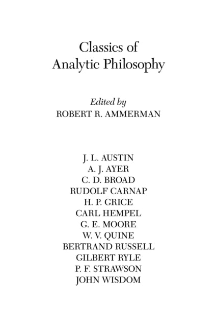 View other formats and editions of Classics of Analytic Philosophy by Robert Ammerman